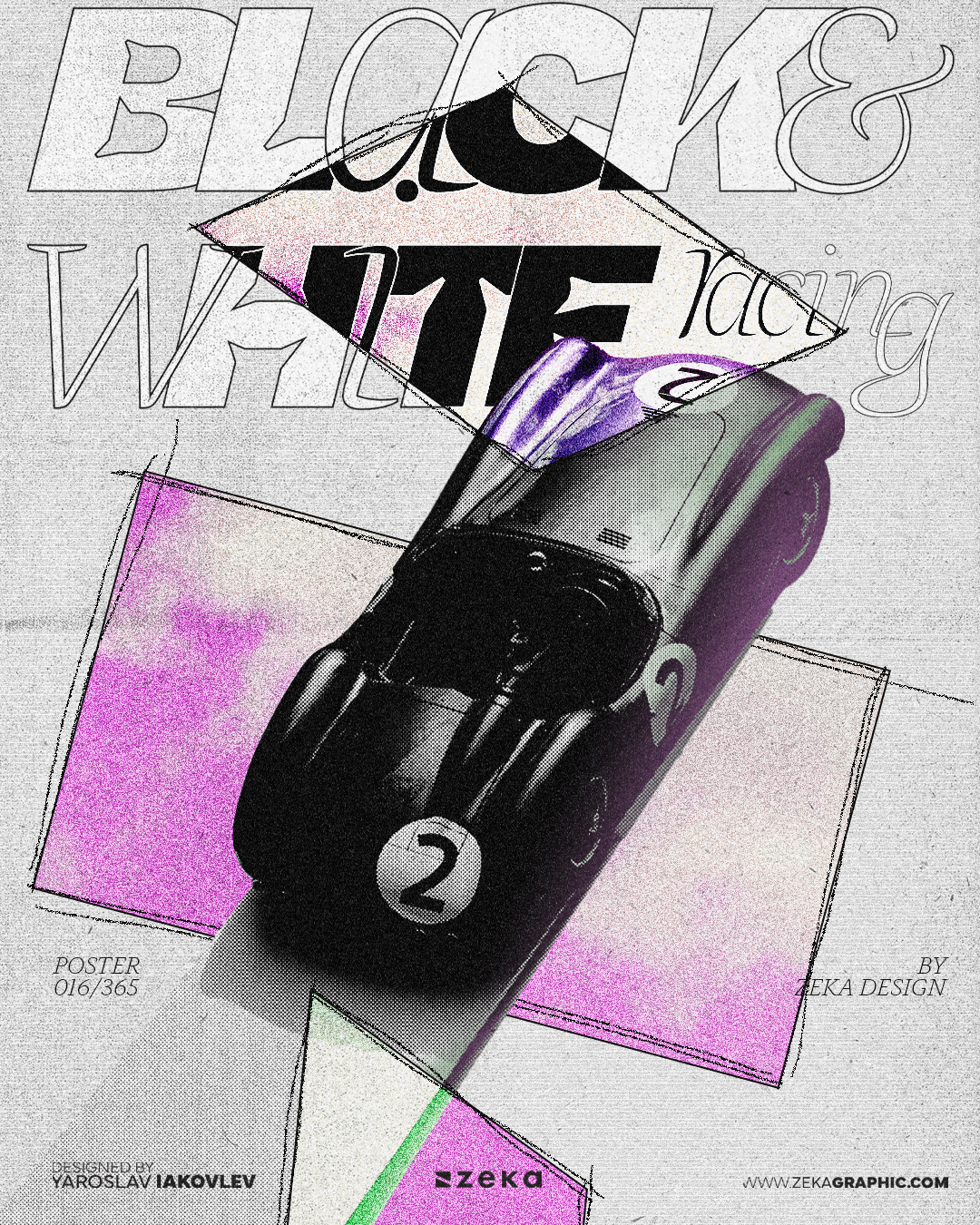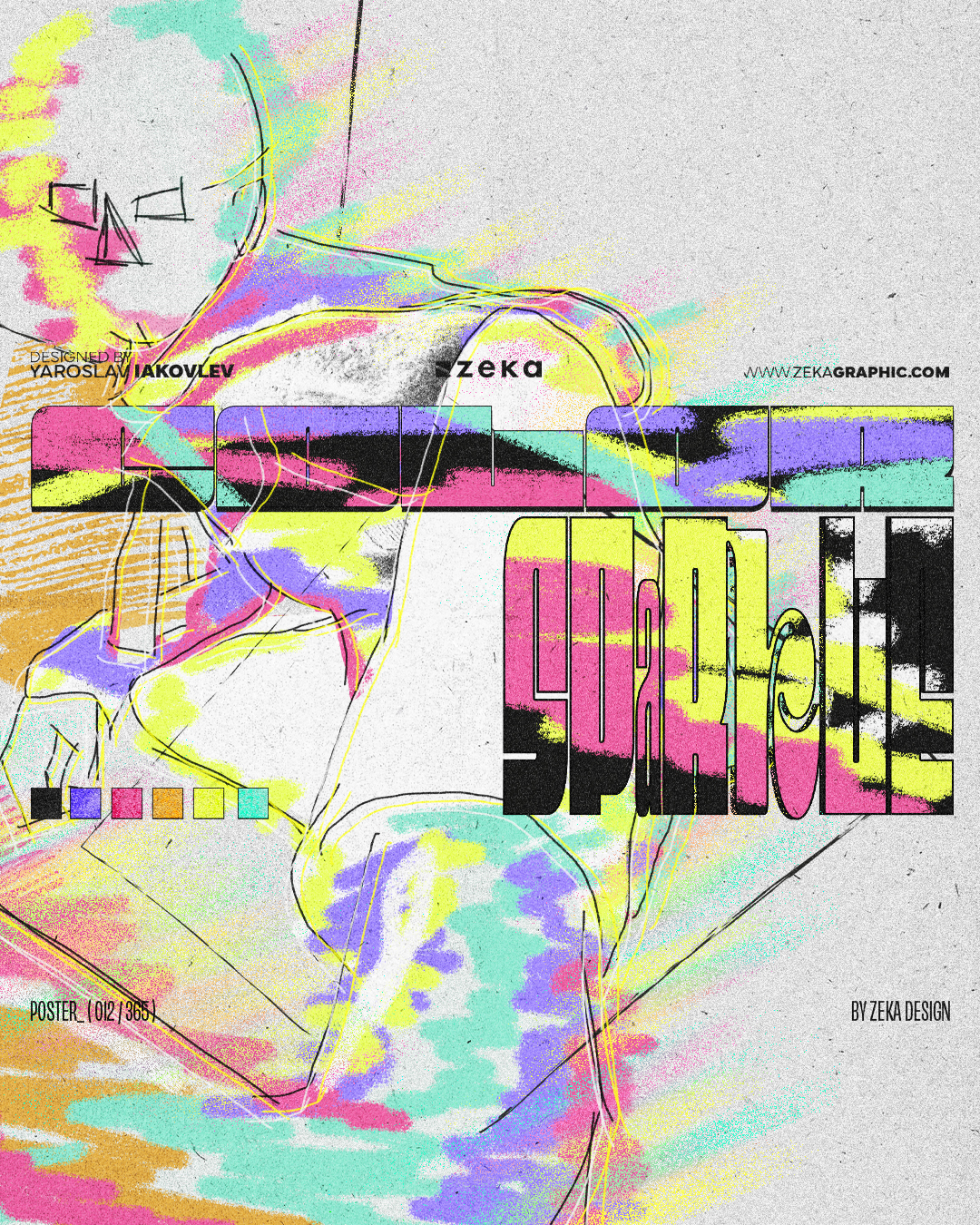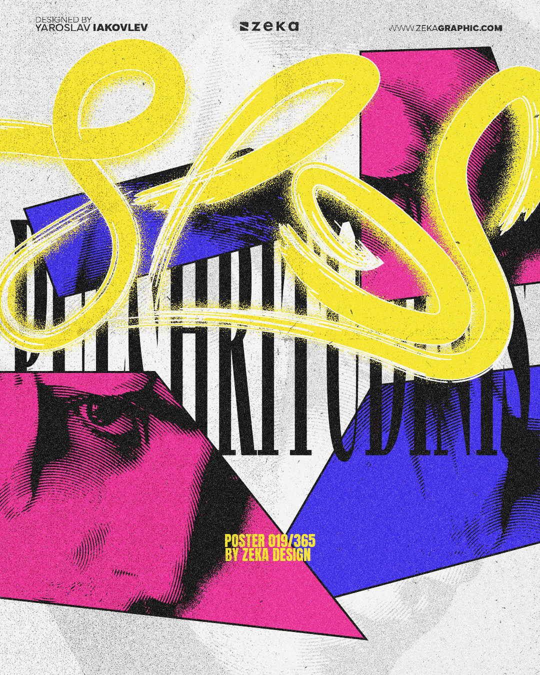 In this page, you can find the posters made on July for the 365 Collection made by Zeka Design, where I experimented with custom typography, textures, new filters and played with digital collage to create abstract and modern posters.